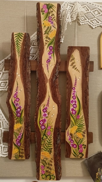Наши мастера взяли за основу своего стиля сибирские растения – иван-чай, клевер, жарки, бруснику, шишки, грибки, рябину, шиповник. И вся эта таёжная красота, выполненная Мастерами Илима, педагогами школы и учащимися отделения декоративно-прикладного искусства, представлена на выставке на тарелках, чемоданах, посуде, дачных принадлежностях, спортивном инвентаре, вазах, шкатулках.