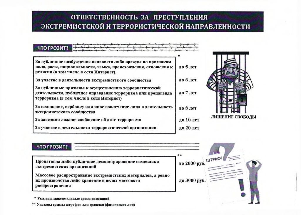 Противодействие терроризму и экстремизмуНегативные последствия совершения противоправных действийПамятка об ответственности за преступленияэкстремистской и террористическойнаправленностиСкачать