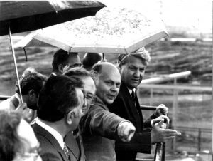 4 августа 1985 года Усть-Илимск посетили секретарь ЦК КПСС Борис Николаевич Ельцин. В поездке его сопровождали министр Минбумлеспрома СССР Михаил Иванович Бусыгин и другие партийные и хозяйственные руководители Иркутской области.